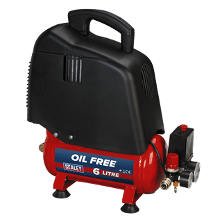 Air Displacement: 6.35cfm(180L/min). • Maximum Free Air Delivery: 4.7cfm(130L/min). • Maximum Pressure: 116psi(8bar). • Ideal for use where an oil free air delivery is required. • Especially suited to small low pressure, touch-up and air brush spraying applications. • Simple construction with fewer components makes this unit practically maintenance-free. • Reduced weight gives greater portability and can be transported and even operated on its side. • Precision welded receiver tank manufactured to meet Pressure Vessel Directive. • Fitted with fully automatic pressure cut-out switch and air regulator with gauge.